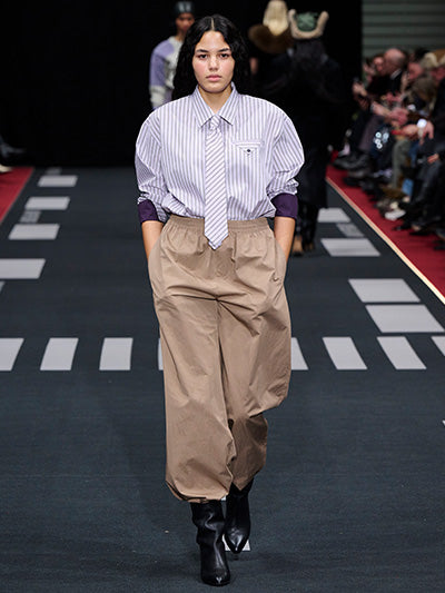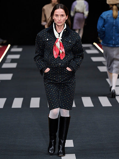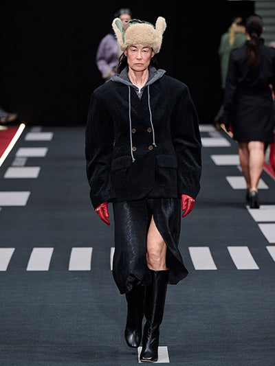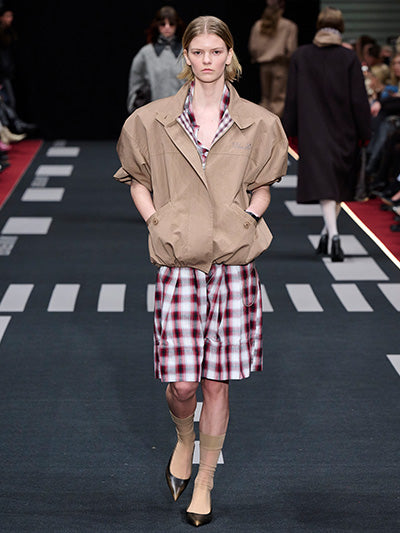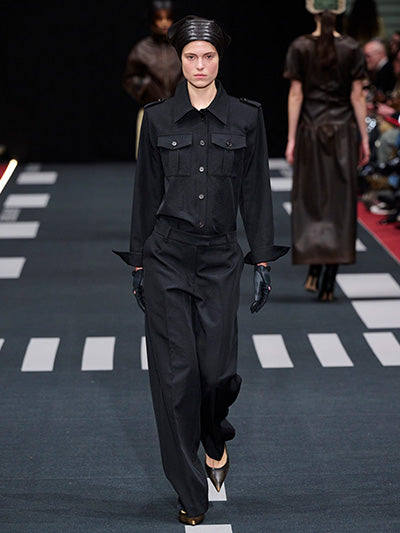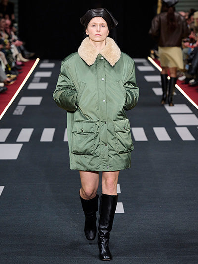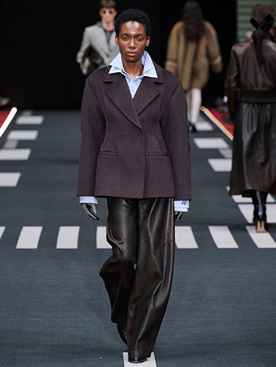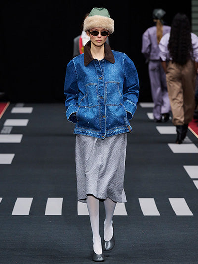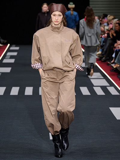 Baum und Pferdgarten’s Autumn Winter 2026 collection, Airborne, explores the tension between structure and softness, precision and expression. Designed by creative directors Rikke Baumgarten and Helle Hestehave, the collection draws inspiration from the golden age of aviation and the hands-on world of physical labour that surrounded it - a universe shaped by discipline, uniforms, and utility.